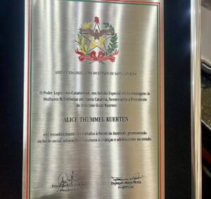 A homenagem evidencia o trabalho consistente desenvolvido por Alice Kuerten ao longo dos anos, marcado por dedicação, sensibilidade e compromisso com a transformação social.
